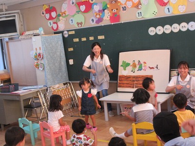 大きな絵本やパネルシアターに興味津々!